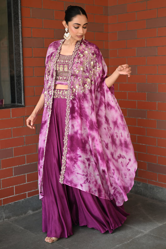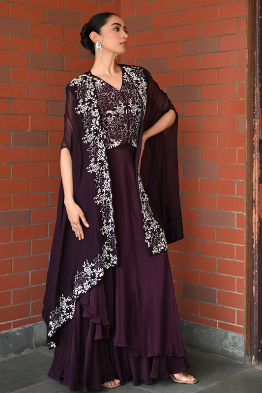 WINE CAPE LEHENGA SET