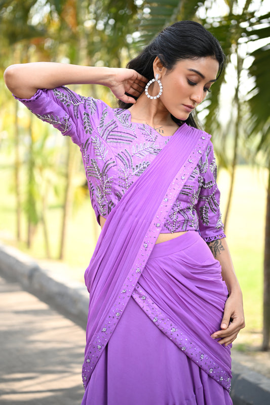 EMBROIDERED LAVENDER DRAPE SAREE