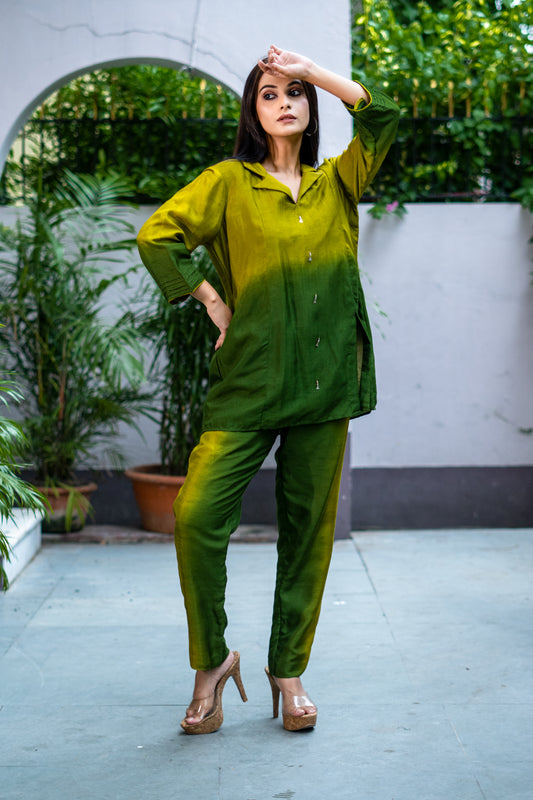 GREEN CORDSET WITH GEOMETRIC MOTIFS