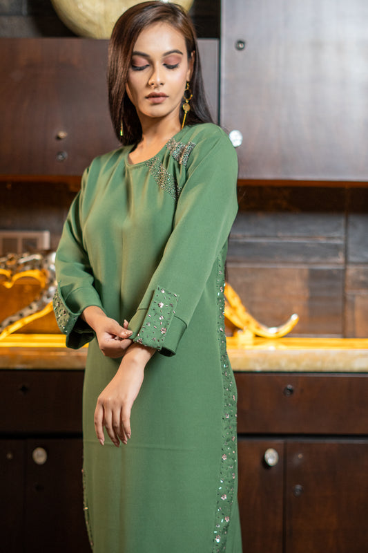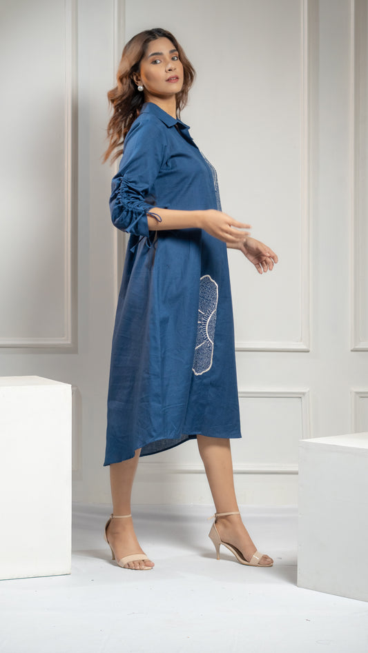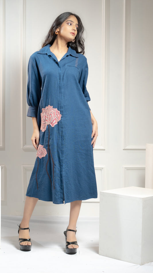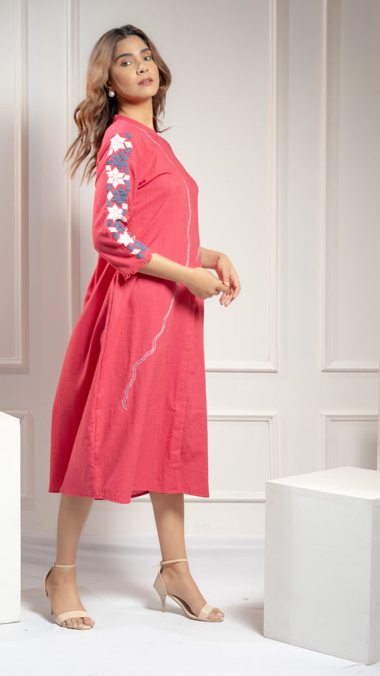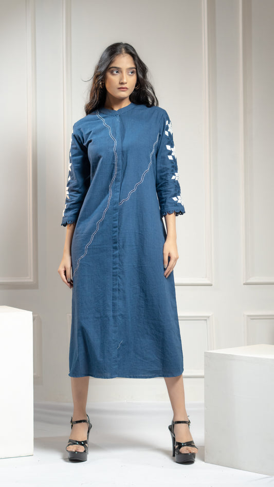 DRESS WITH FLORAL KATHA EMBROIDERY