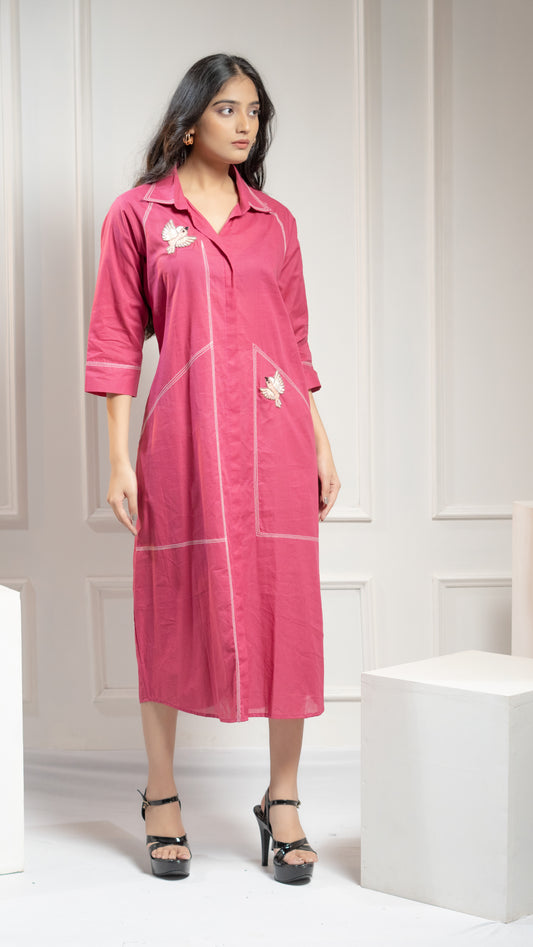 BIRDS MOTIF COTTON DRESS