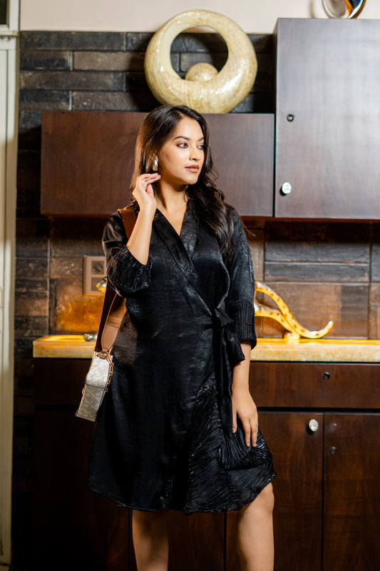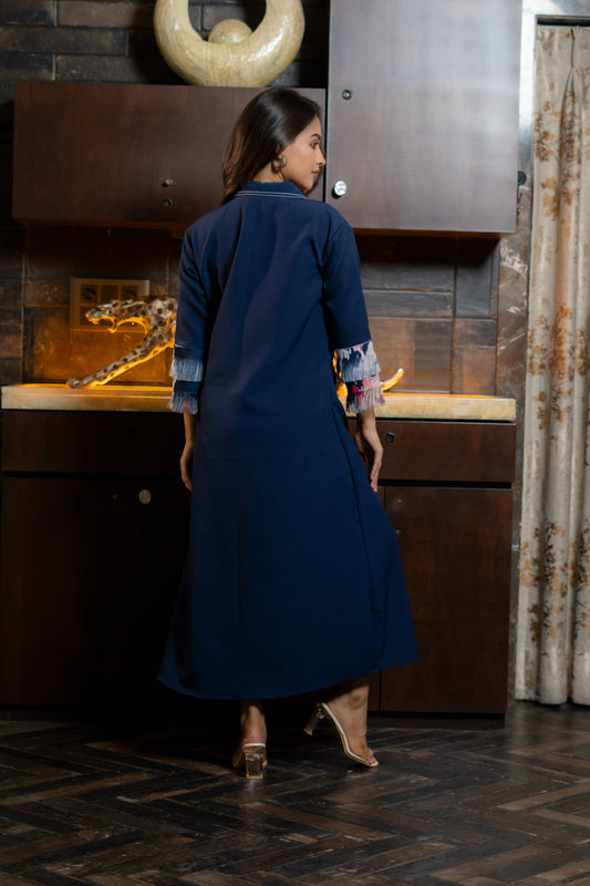 DOUBLE LAYRED DRESS WITH ONE SIDE KAFTAN