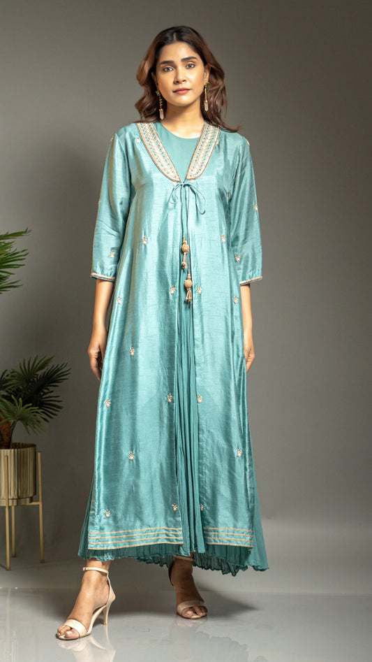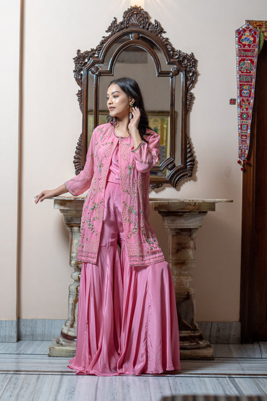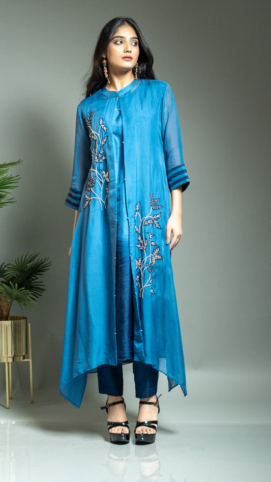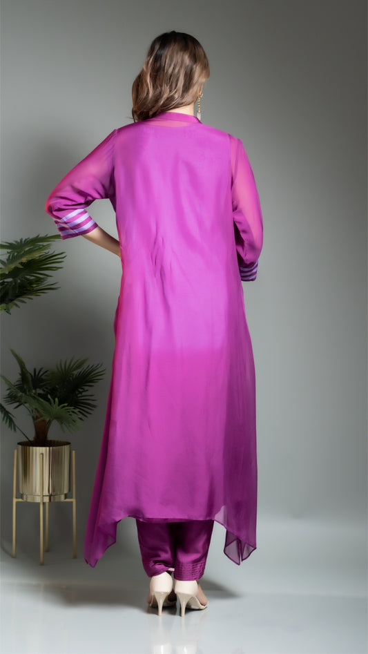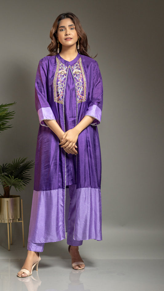 COLOR BLOCKING JACKET WITH KURTA AND PANTS