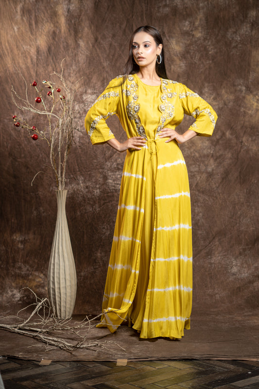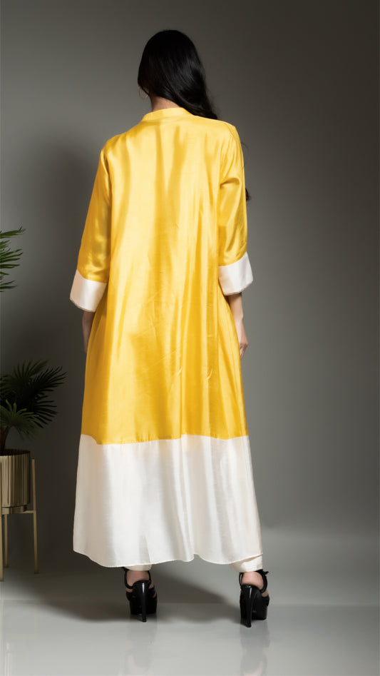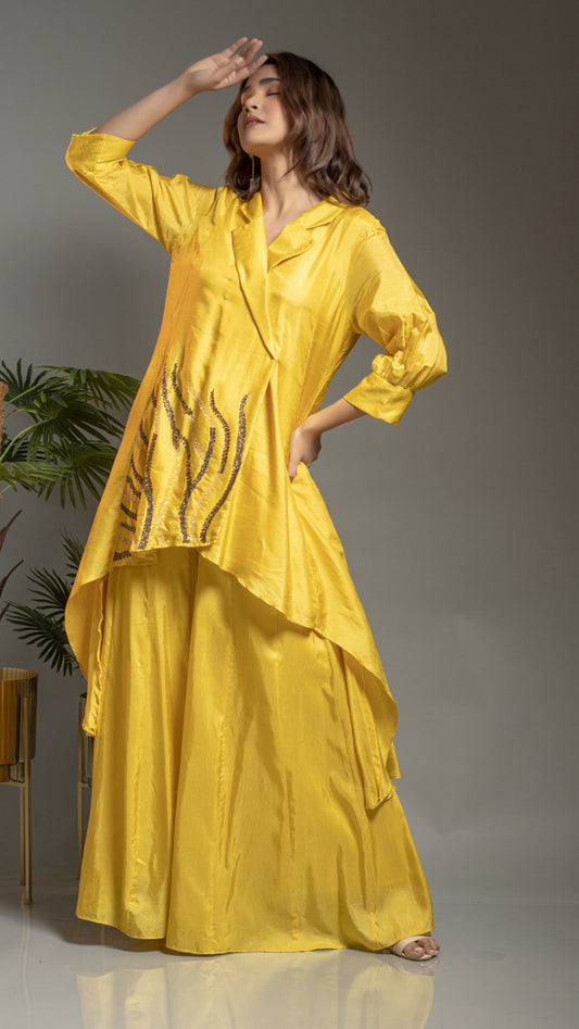YELLOW EMBROIDERED JACKET WITH CONTRAST PANTS
