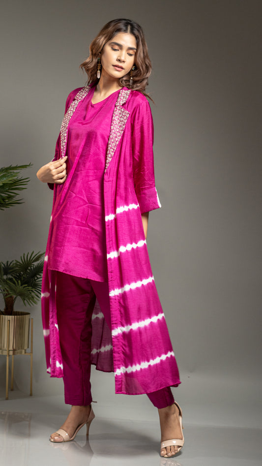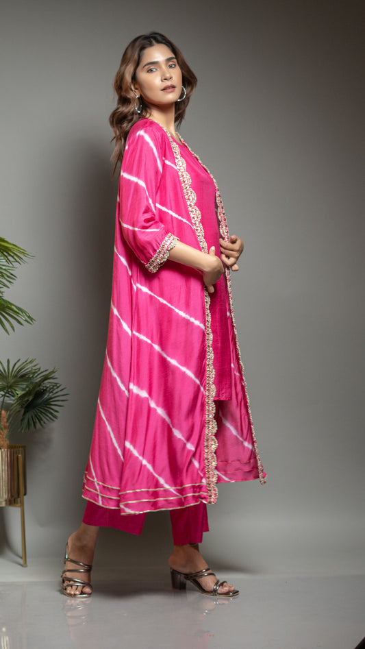 LEHARIYA JACKET WITH SHORT KURTA AND PANTS