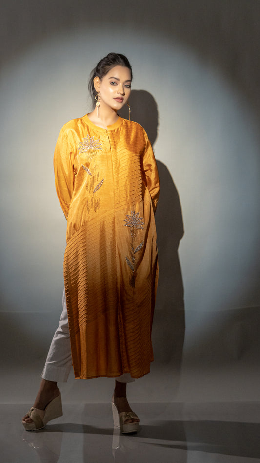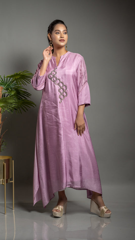 HAND EMBROIDERED NECKLINE TUNIC WITH CRUSHED INNER