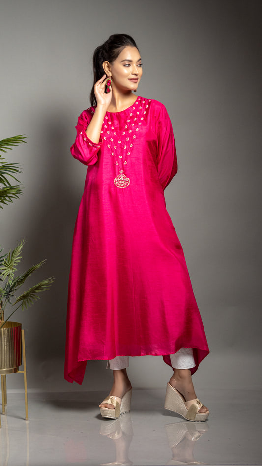 FUCHSIA PINK A LINE TAIL CUT KURTA