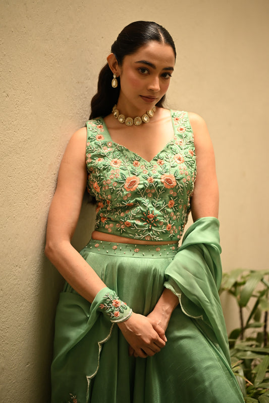 GREEN FLORAL LEHENGA