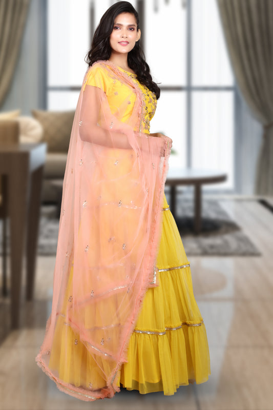 RUFFLE SKIRT PAIRED WITH BLOUSE AND DUPATTA