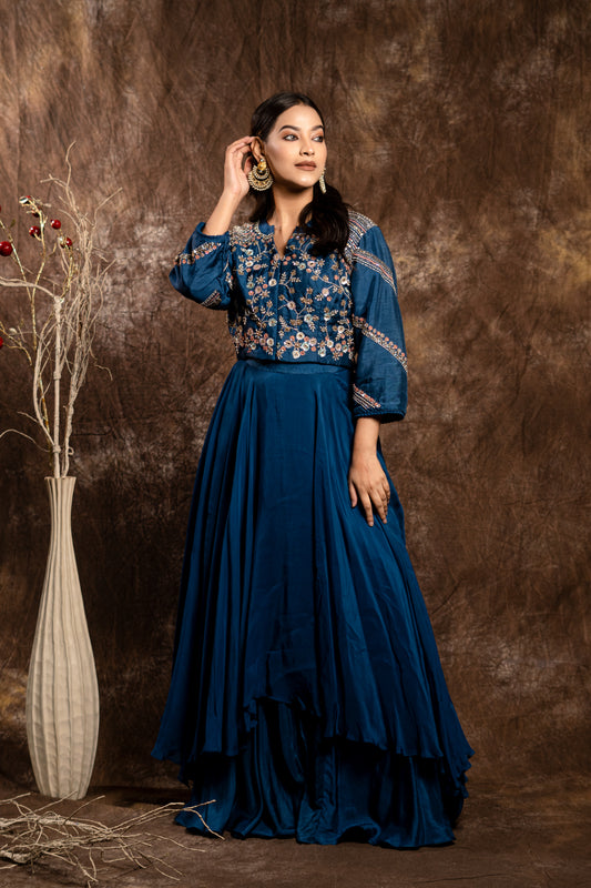 DOUBLE LAYRED SKIRT WITH HEAVILY HAND EMBROIDED BLOUSE