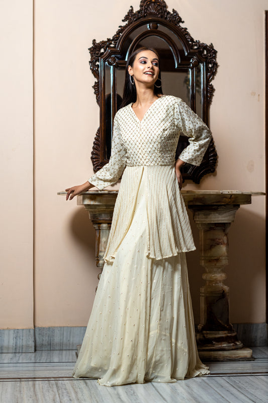 IVORY PEPLIM BLOUSE WITH TEXTURE LEHENGA