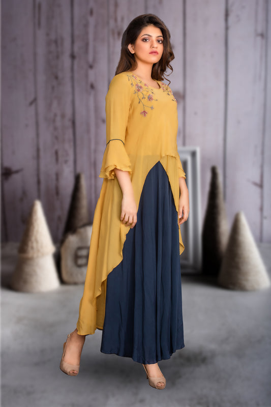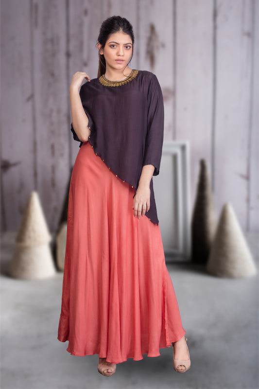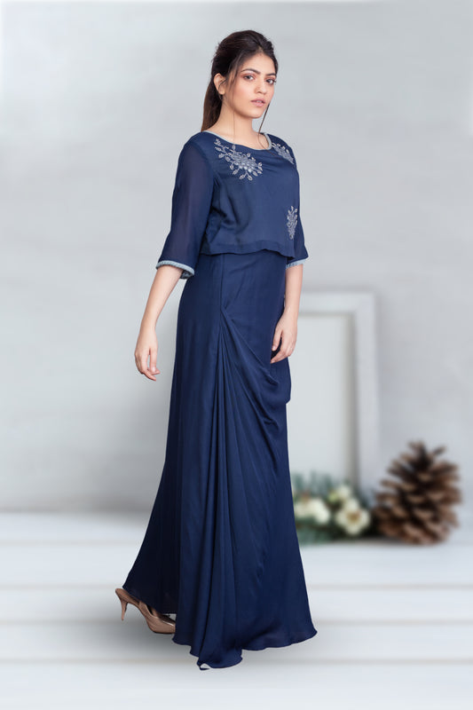 ASYMMETRIC GOWN WITH CROP TOP LOOK