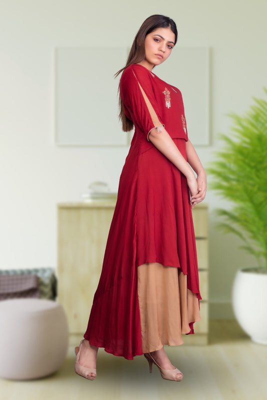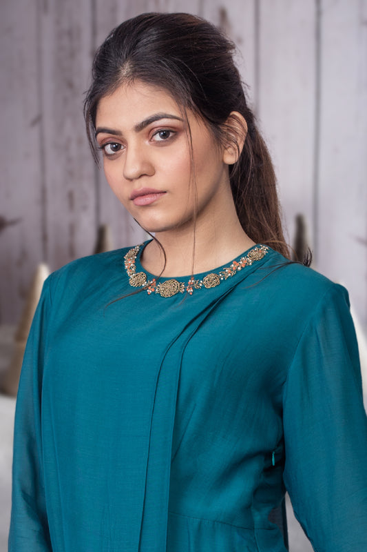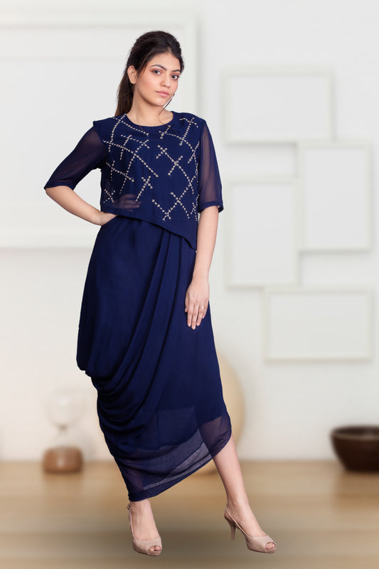 INDOWESTERN COWL DRESS WITH CROP TOP LOOK