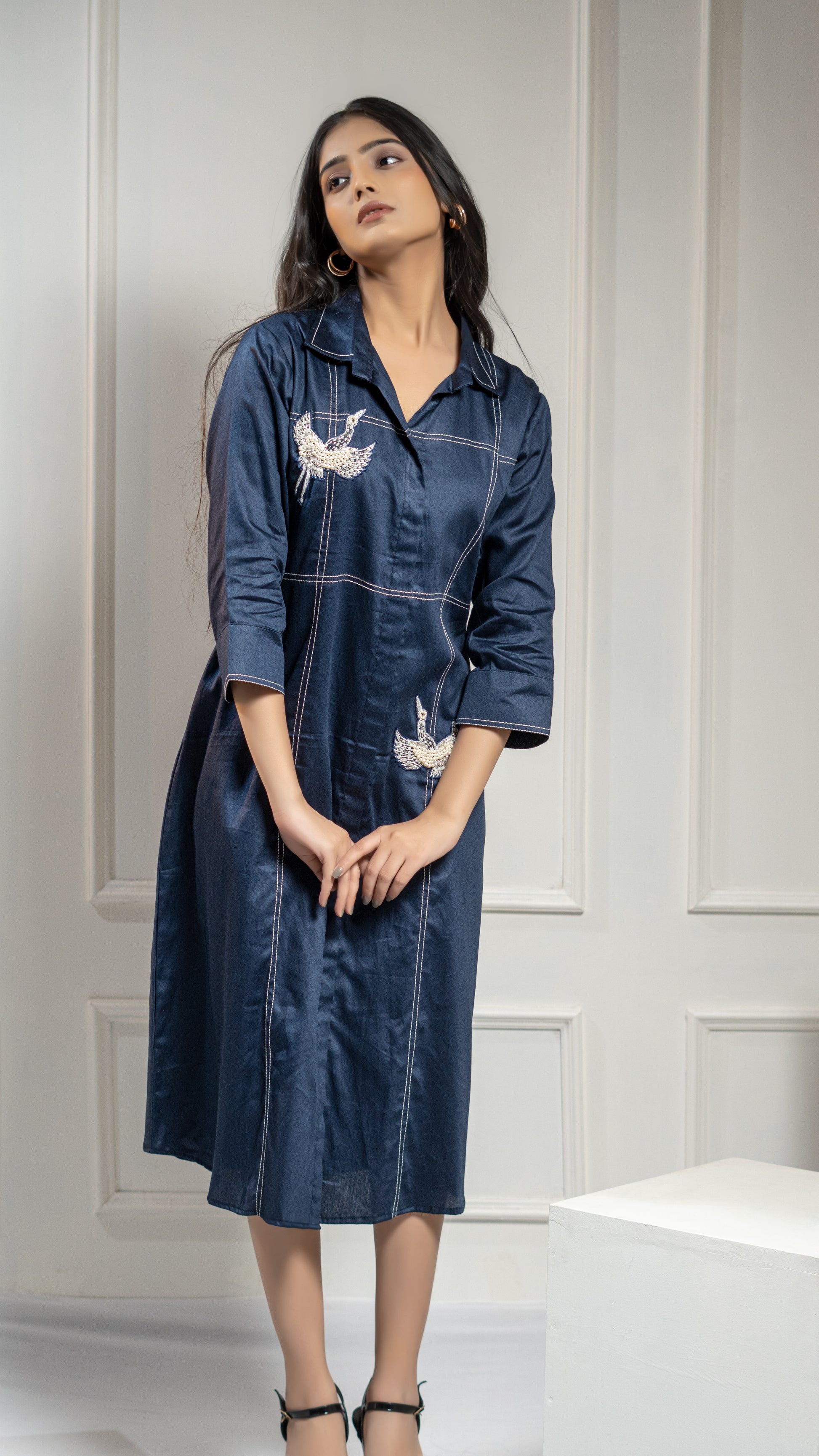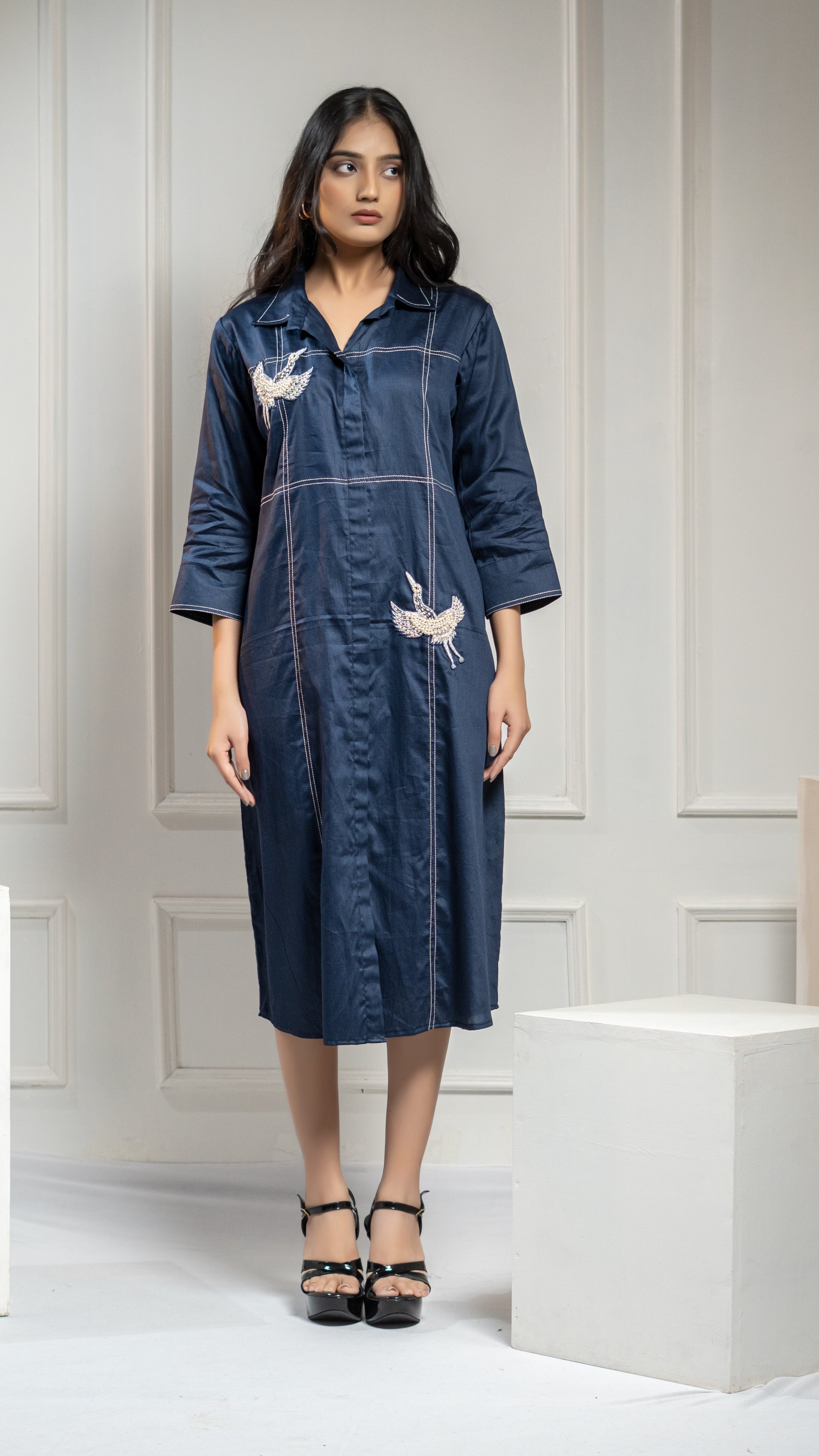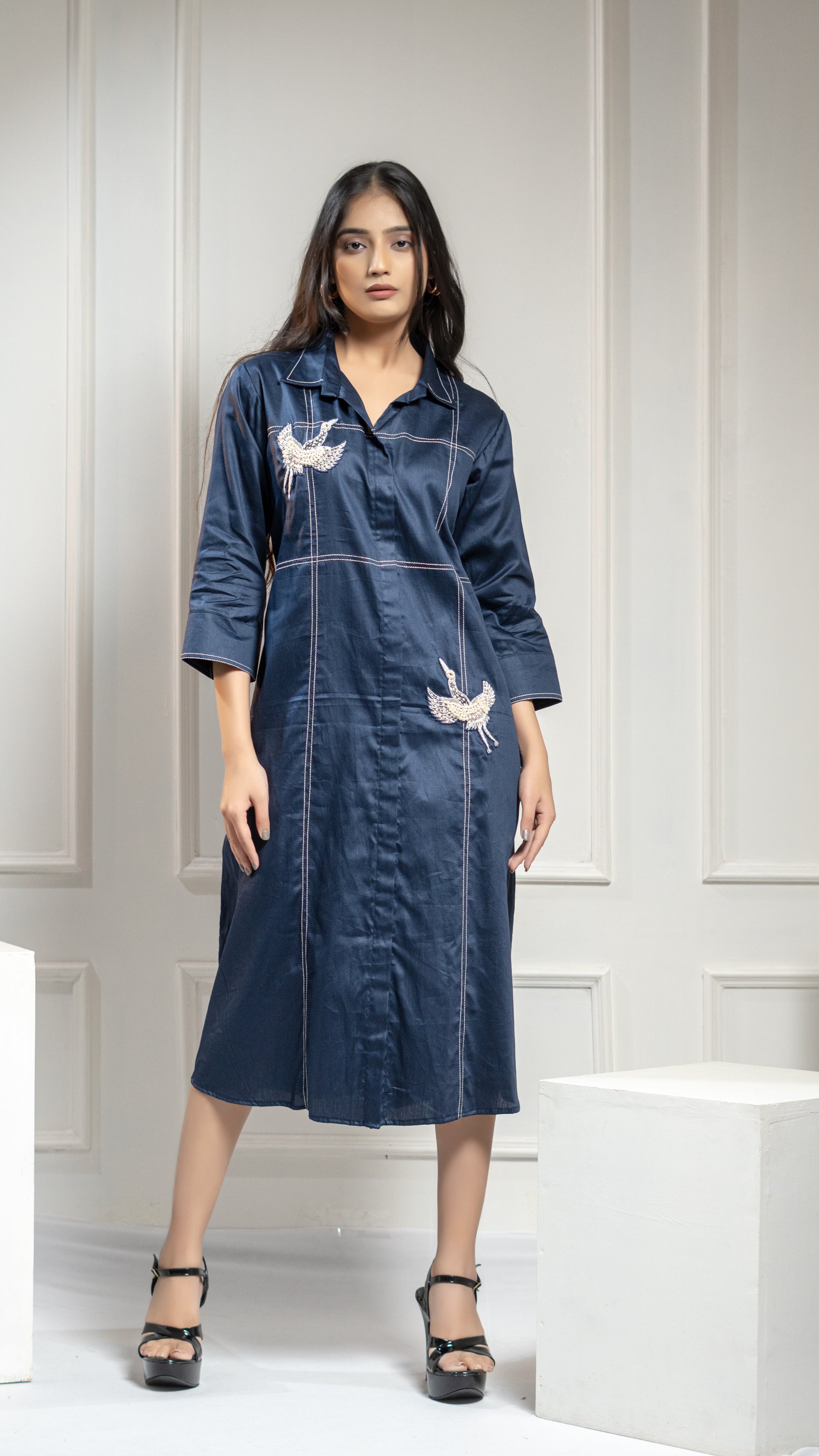 Elevate your wardrobe with our FLEMINGO EMBROIDERED DRESS. This one piece dress features delicate stitchlines and a stunning pearl embroidered flamingo motif. Perfect for any occasion, this dress offers a touch of elegance and sophistication. Embrace the beauty of nature with every step.