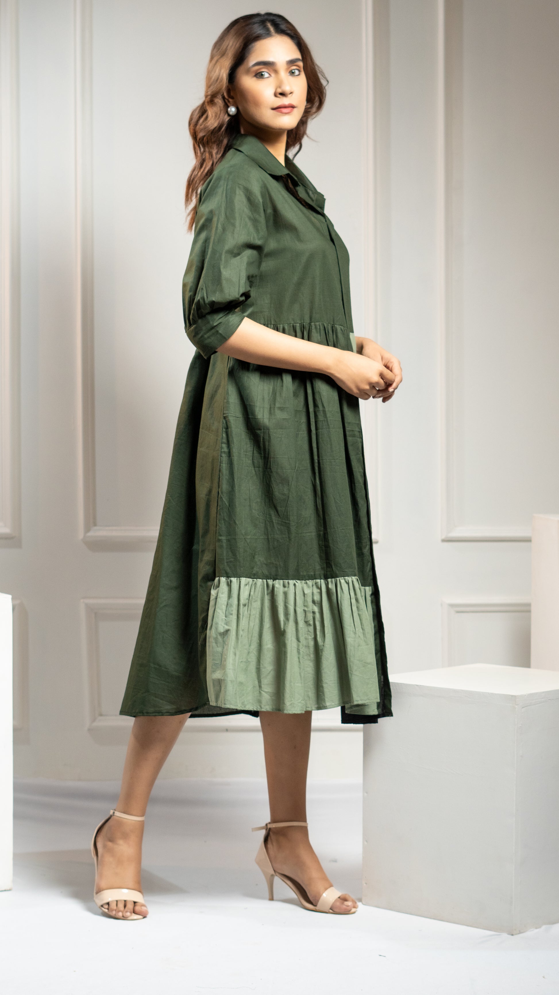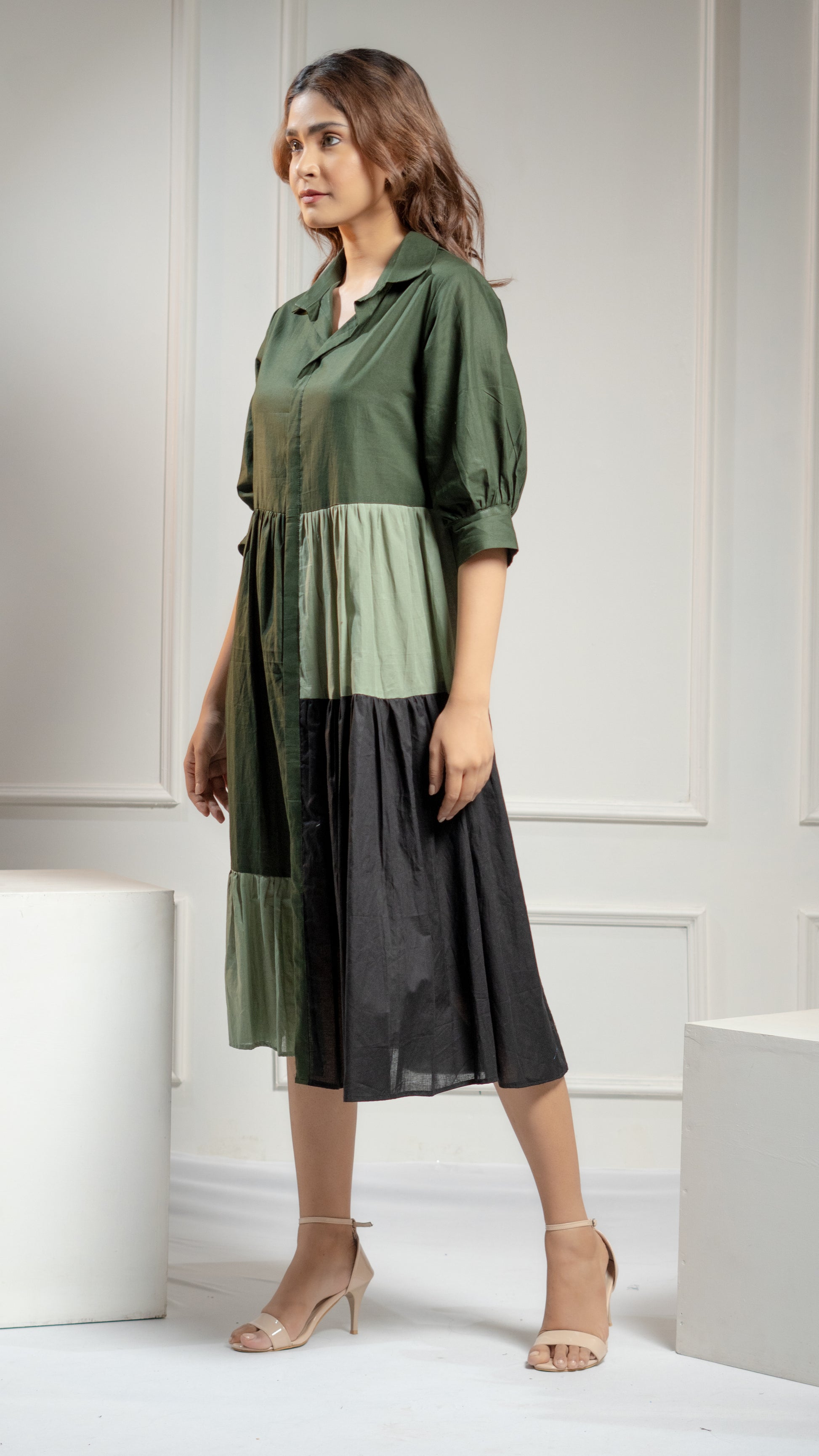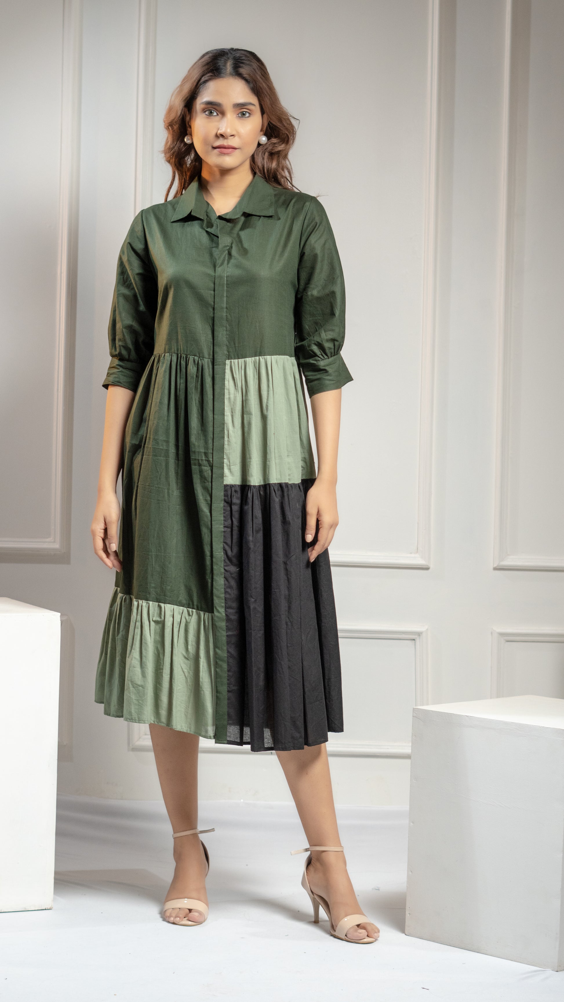 Introducing the Frock Style Colour Blocking Dress - a versatile and effortless addition to your wardrobe. With its unique dual color blocking design, this dress is easy to wear and perfect for any occasion. Experience style and comfort in one chic package.