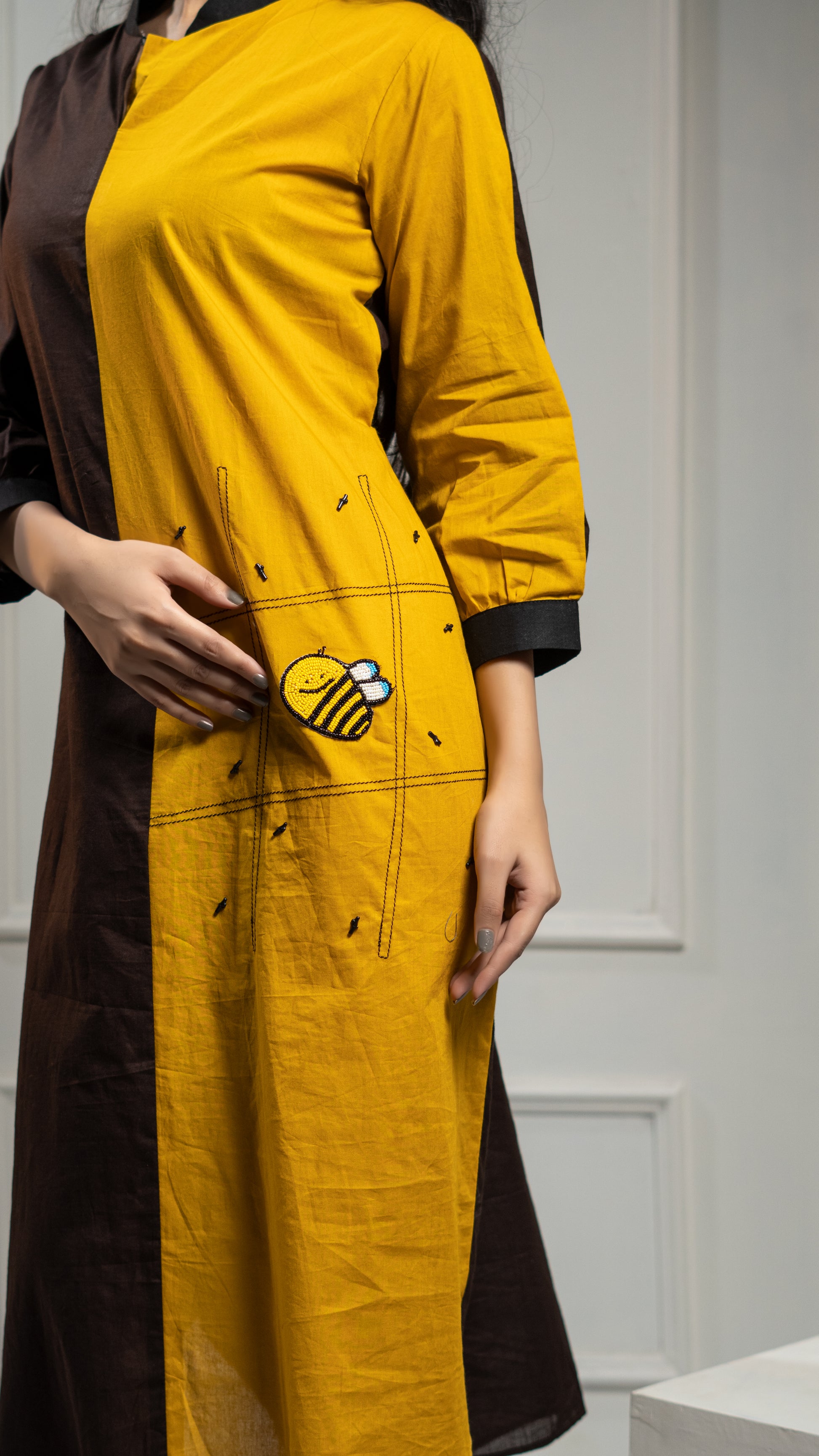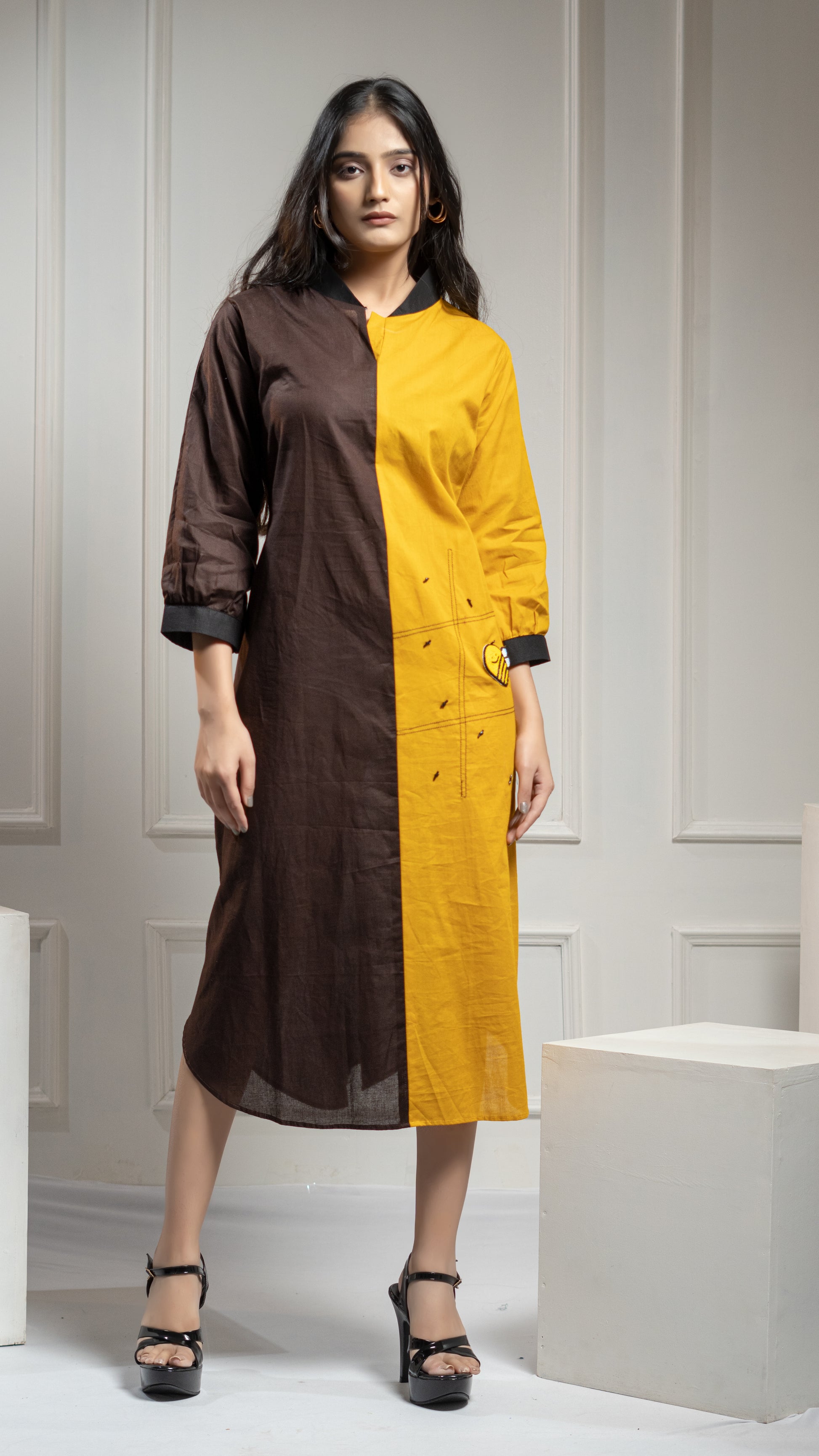 Stay chic and comfortable with our Honey Bee One Piece Dress. This smart and casual dress features a stylish honey bee motif that adds a touch of playfulness to any outfit. Made with high-quality materials, this dress is perfect for any occasion. Look effortlessly stylish and confident in our Honey Bee One Piece Dress.