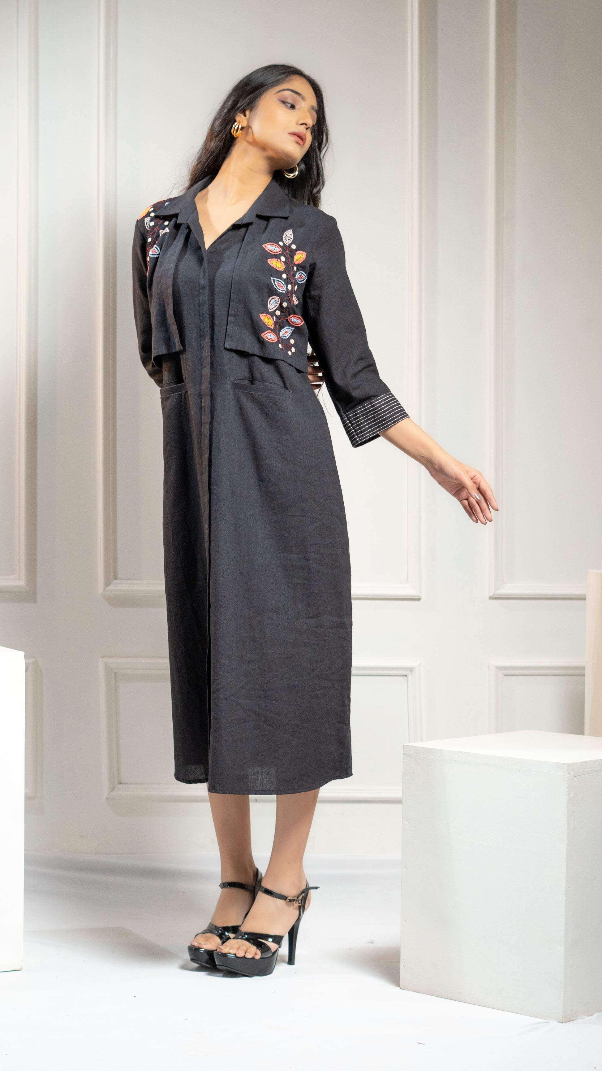 This one-piece cotton dress combines smart and casual styles with its jacket pattern and embroidery. Perfect for any occasion, this dress adds a touch of sophistication to your wardrobe. Expertly crafted from high-quality cotton, this dress is both fashionable and comfortable.