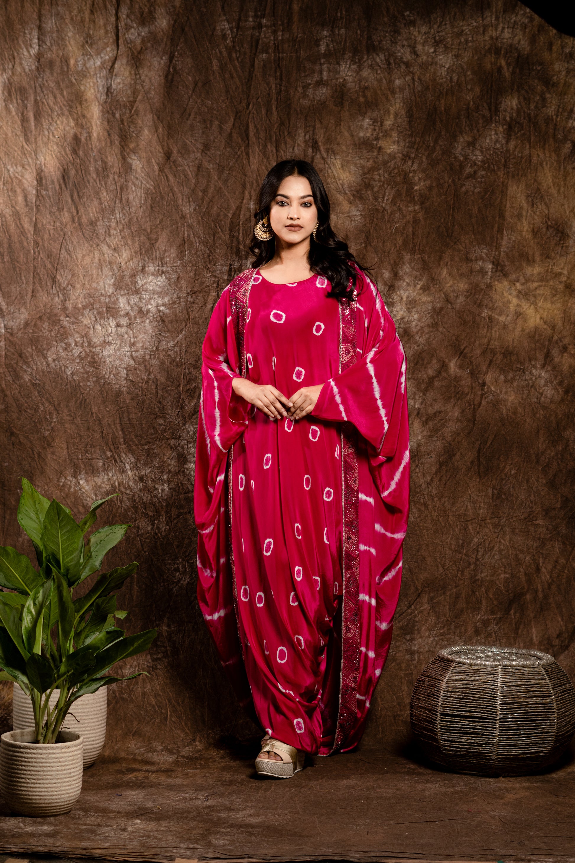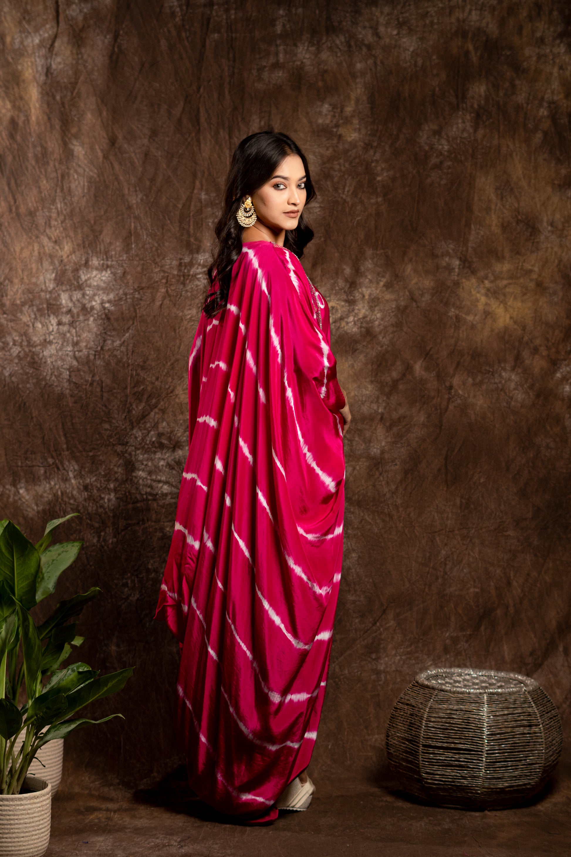 This Lehariya jacket comes with a unique draped inner, making it a statement piece. The hand-embroidered details add a touch of elegance. Stay stylish and comfortable in this versatile jacket.