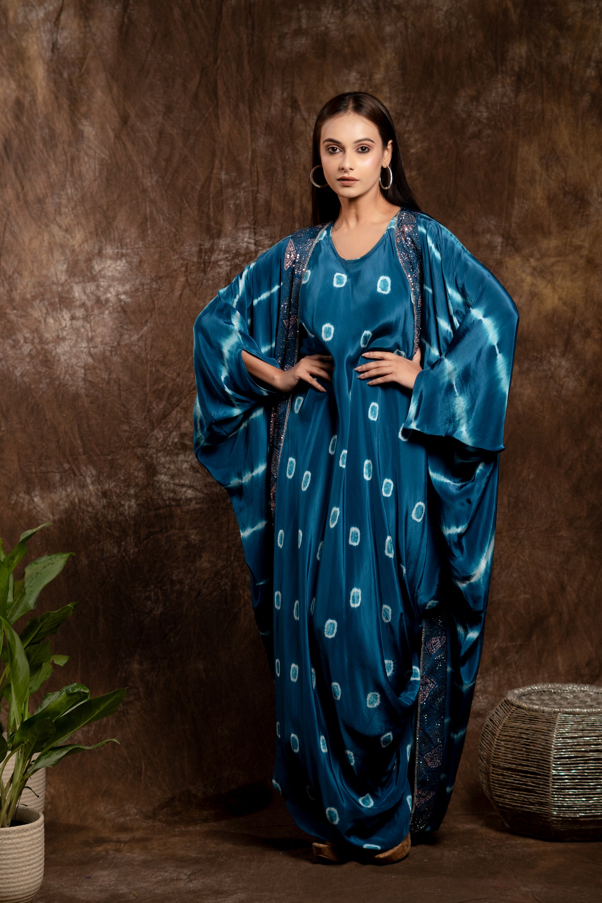 Effortlessly elevate your style with our LEHARIYA JACKET WITH DRAPED INNER. The hand-embroidered pattern on the draped inner adds a touch of elegance, while the unique design of the lehariya jacket makes it a statement piece. Enhance your look with this must-have garment.