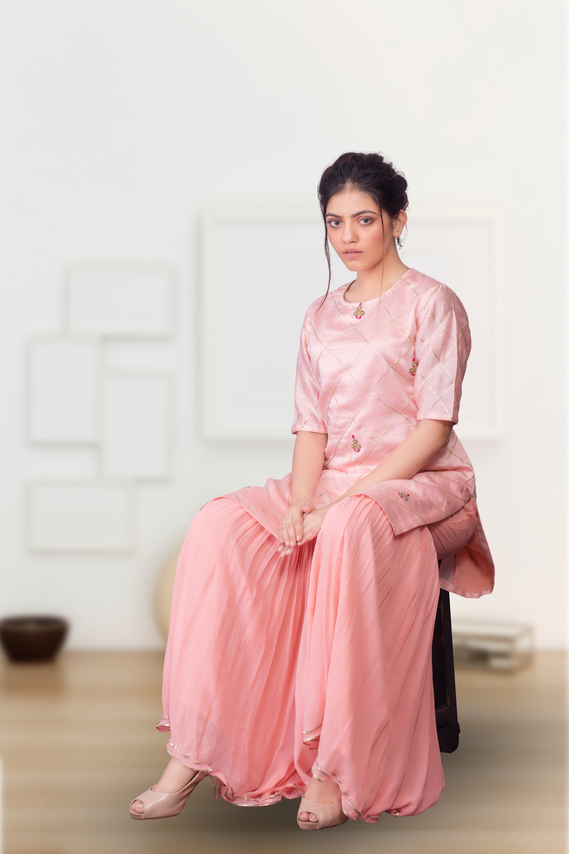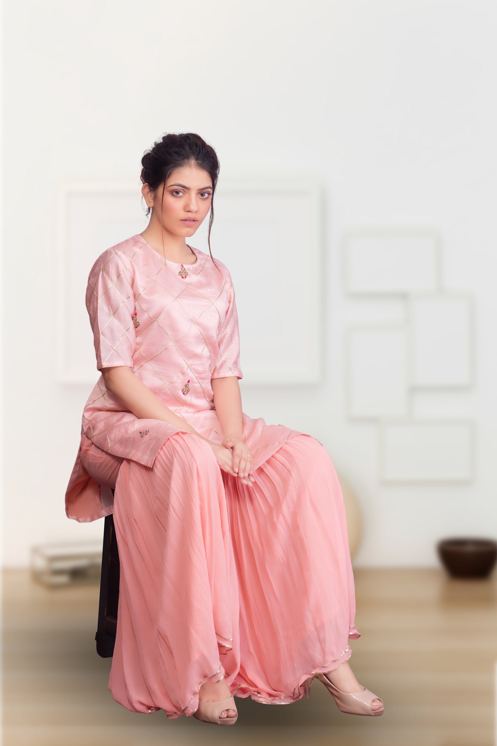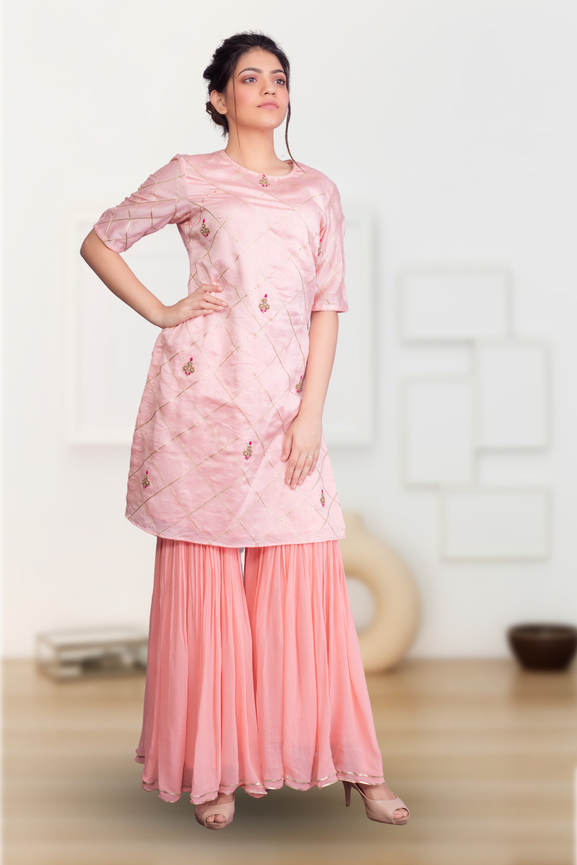 Fabric:- CHANDERI TUNIC WITH GEOG SHARARA