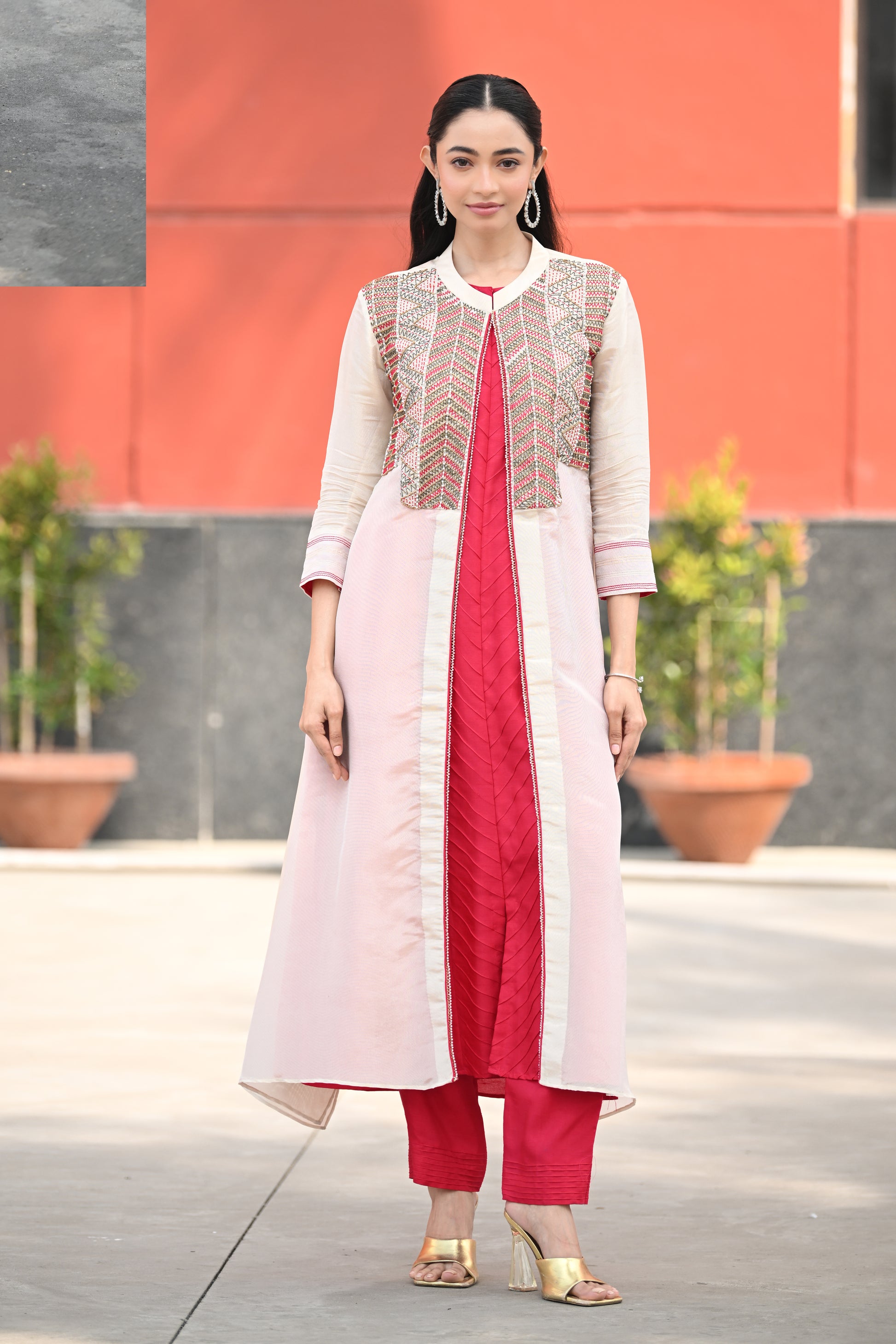 Color:- OFF WHITE WITH FUSCHIA PINK